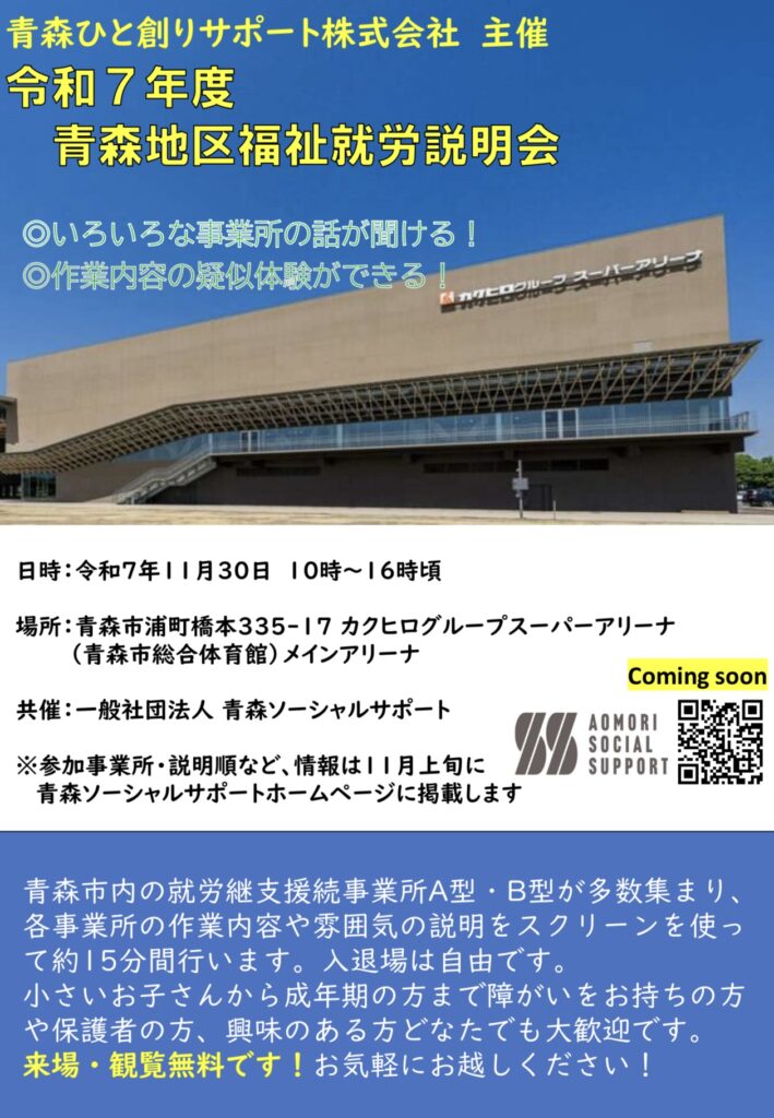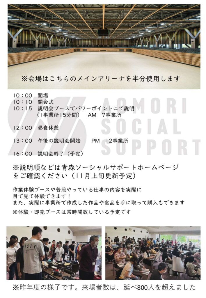 このイベントが、地域資源である事業所様と、福祉就労を目指すご利用者様との貴重な出会いの場となることを目指します。一緒に青森の福祉を盛り上げて行きましょう!